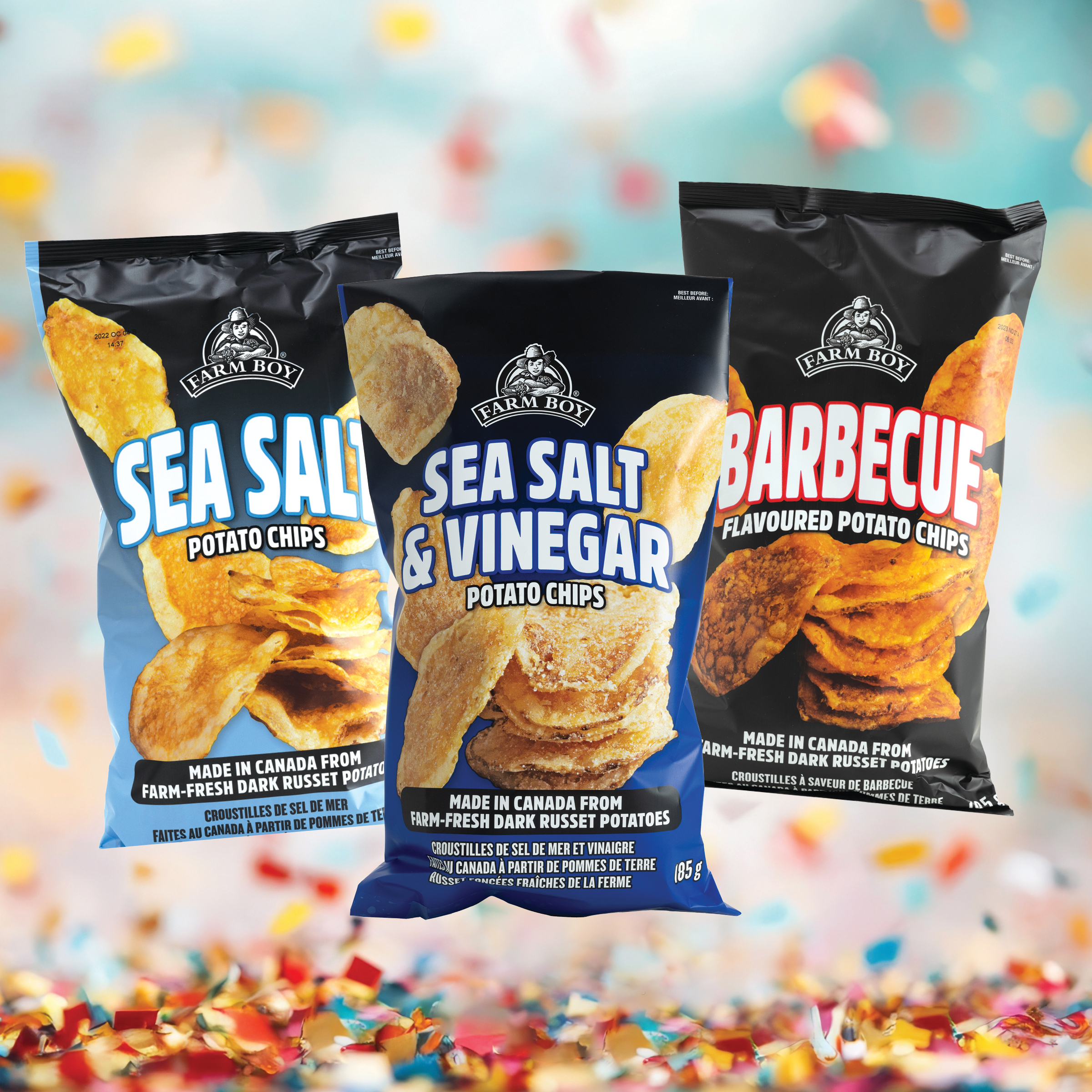 Crunchy, crave-able, and kettle-cooked, our Potato Chips are made from Canadian-grown, farm-fresh dark russet potatoes. Cooked with care in small batches to ensure the best flavour and texture, they’re seasoned to perfection in classic varieties like Barbecue, Sea Salt, Sea Salt & Vinegar, and Sour Cream & Onion.