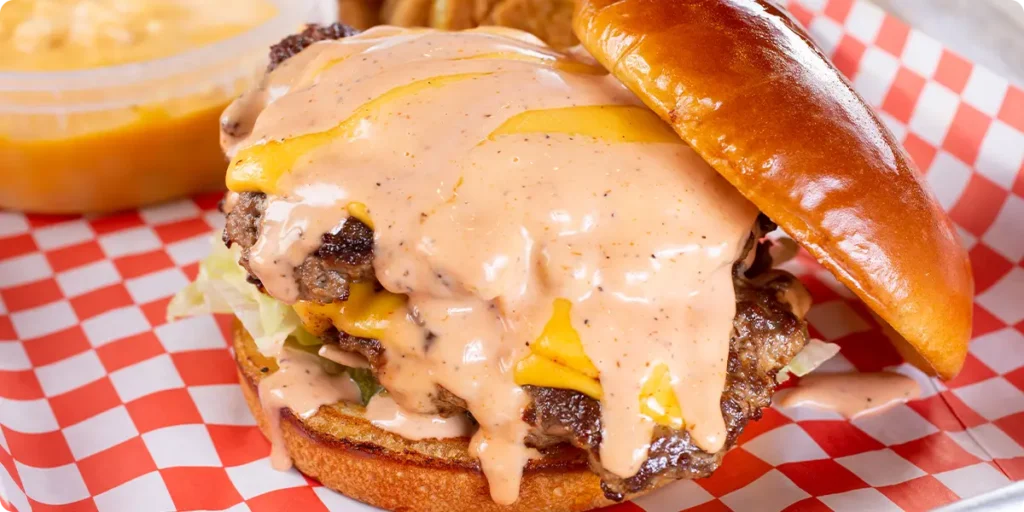- Place the burger on the bottom half of the bun. Spread burger sauce on the top half of bun and assemble.