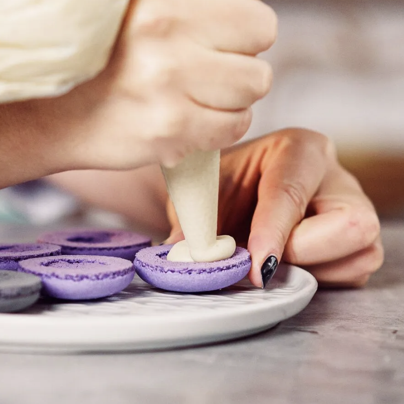- Pastry chefs typically fill macarons with flavoured buttercreams, curds, ganaches, jellies, and more.