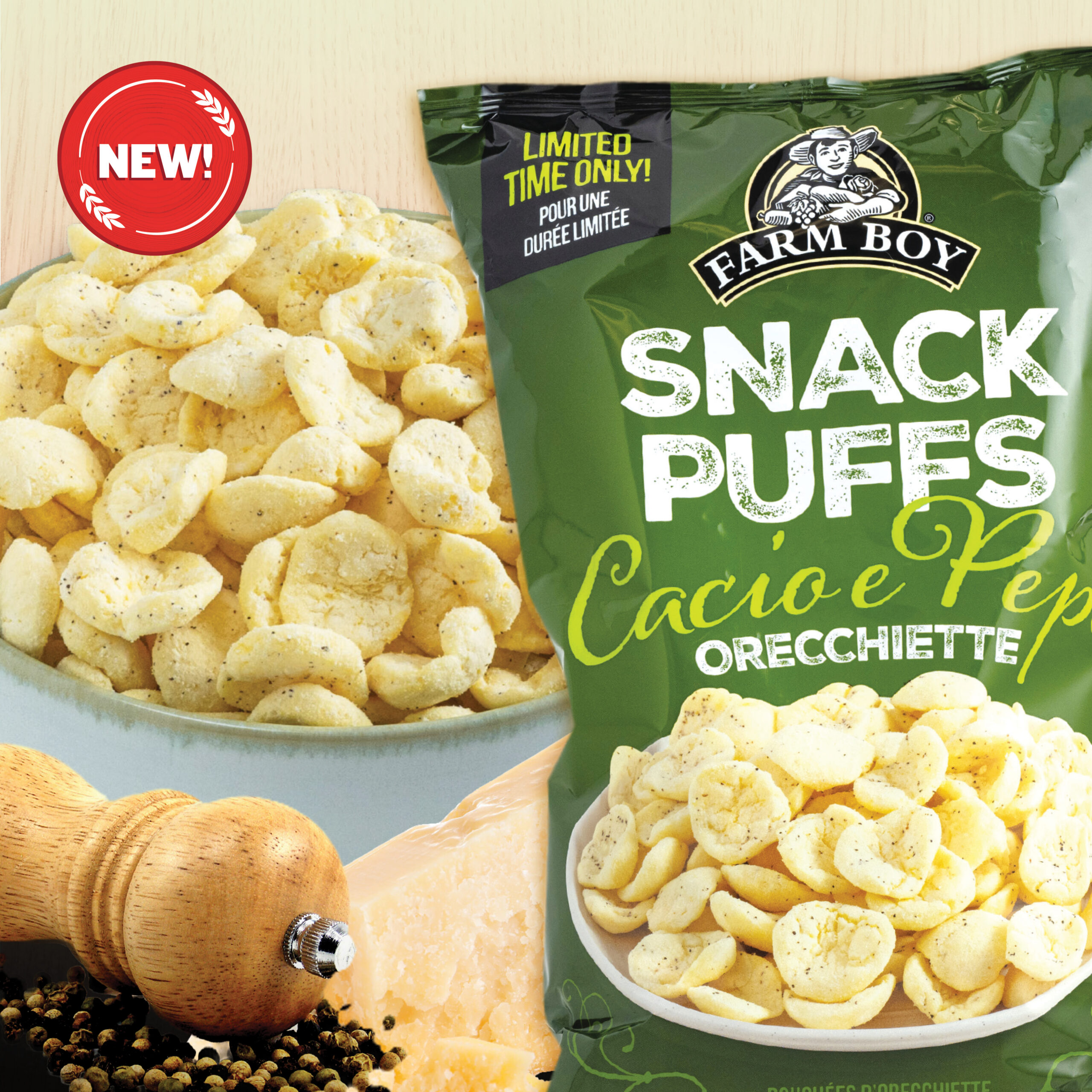Made from protein-rich fava beans, they’re a gourmet twist on the classic Italian pasta dish. Infused with the taste of aged cheese and cracked black pepper, they guarantee snack-tisfaction.