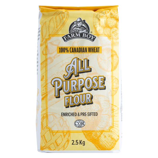 Farine De Blé • Niacine • Peroxyde De Dibenzoyle • Fer Réduit • Acide Ascorbique • Mononitrate De Thiamine • Riboflavine • Amylase • Acide Folique. Contient : Blé. Peut Contenir : Lait • Soja • Œufs.