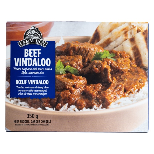 Riz (Eau, Riz, Huile De Canola) • Bœuf • Eau • Oignons • Tomates Broyées • Huile De Canola • Ail • Fines Herbes Et Épices • Gingembre • Vinaigre • Coriandre • Sel • Acide Citrique • Sucre • Yogourt (Substances Laitières, Pectine, Culture Bactérienne). Contient : Lait.