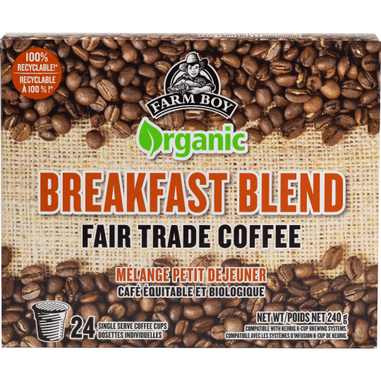 Private Label Products > Grocery and Gourmet > Coffee and Tea > K Cups > Farm Boy™ Breakfast Blend Organic Fair Trade Coffee (24 count)
