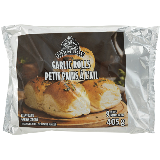 Farine De Blé Enrichie • Eau • Margarine D’huile De Canola Et D'huile De Palme Et De Palmiste Modifiées • Huile De Canola • Sel • Ail • Propionate De Calcium • Levure • Persil • Farine De Blé Maltée • Amylase • Glucoamylase • Xylanase • Acide Ascorbique. Contient : Blé • Soja. Peut Contenir : Lait • Œufs • Sulfites • Orge • Seigle • Avoine.