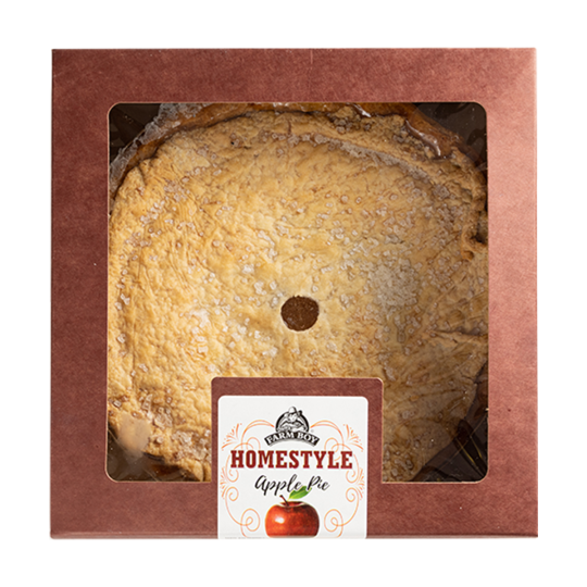 Apples • Sugar • Brown Sugar • Unbleached Wheat Flour • Water • Butter • Lard • Lemon Juice • Modified Tapioca Starch • Eggs • Baking Powder • Cinnamon • Xanthan Gum • Salt • Apple Cider Vinegar. Contains: Wheat, Milk, Egg.