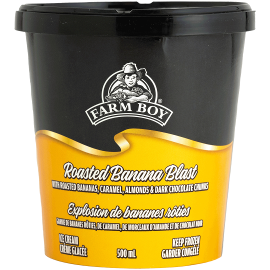 Crème • Sucres (Sucre De Canne, Sucre Brun, Sirop De Maïs) • Bananes • Beurre • Chocolat (Sucre, Chocolat Non Sucré, Beurre De Cacao, Lécithine De Soja) • Cacao • Amandes • Extrait Naturel De Vanille • Gomme De Guar • Gomme De Caroube • Mono- Et Diglycérides • Sel De Mer. Contient : Lait, Soja, Amandes. Peut Contenir : Arachides, Œuf, Blé, Autres Noix.