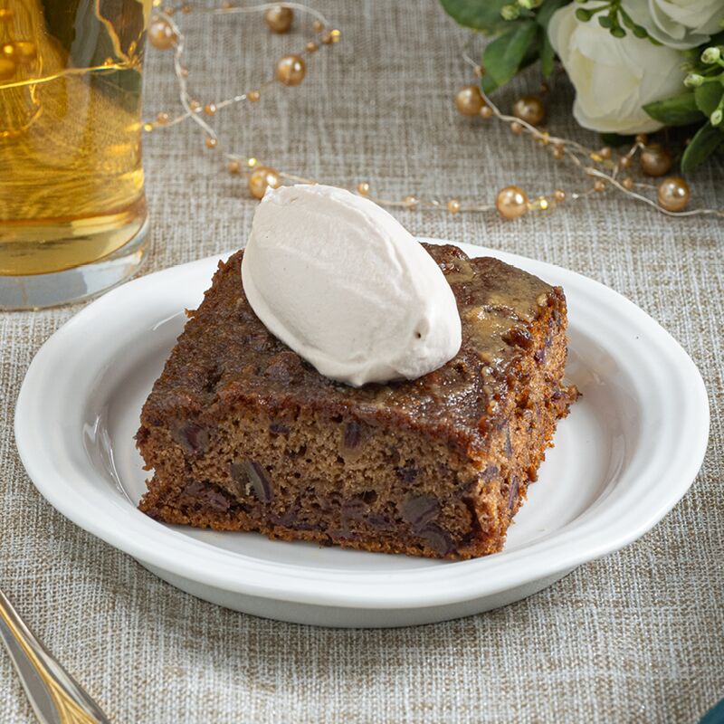 | Toffee Pudding with Irish Coffee Whipped Cream | Place container on oven safe tray and bake, uncovered, at 350°F for 10 minutes, until internal temperature reaches 165°F (74°C). Serve with the Irish Coffee Whipped Cream. |