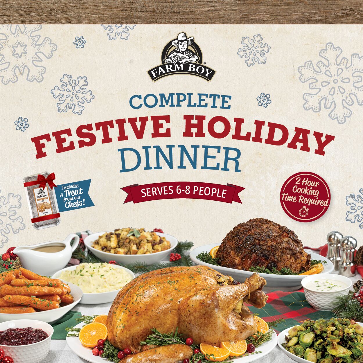 - Prepared by our chefs, our Festive Holiday Turkey Dinner has everything you need: turkey, fixings, and four delicious made-from-scratch sides ready to simply heat, serve, and enjoy.